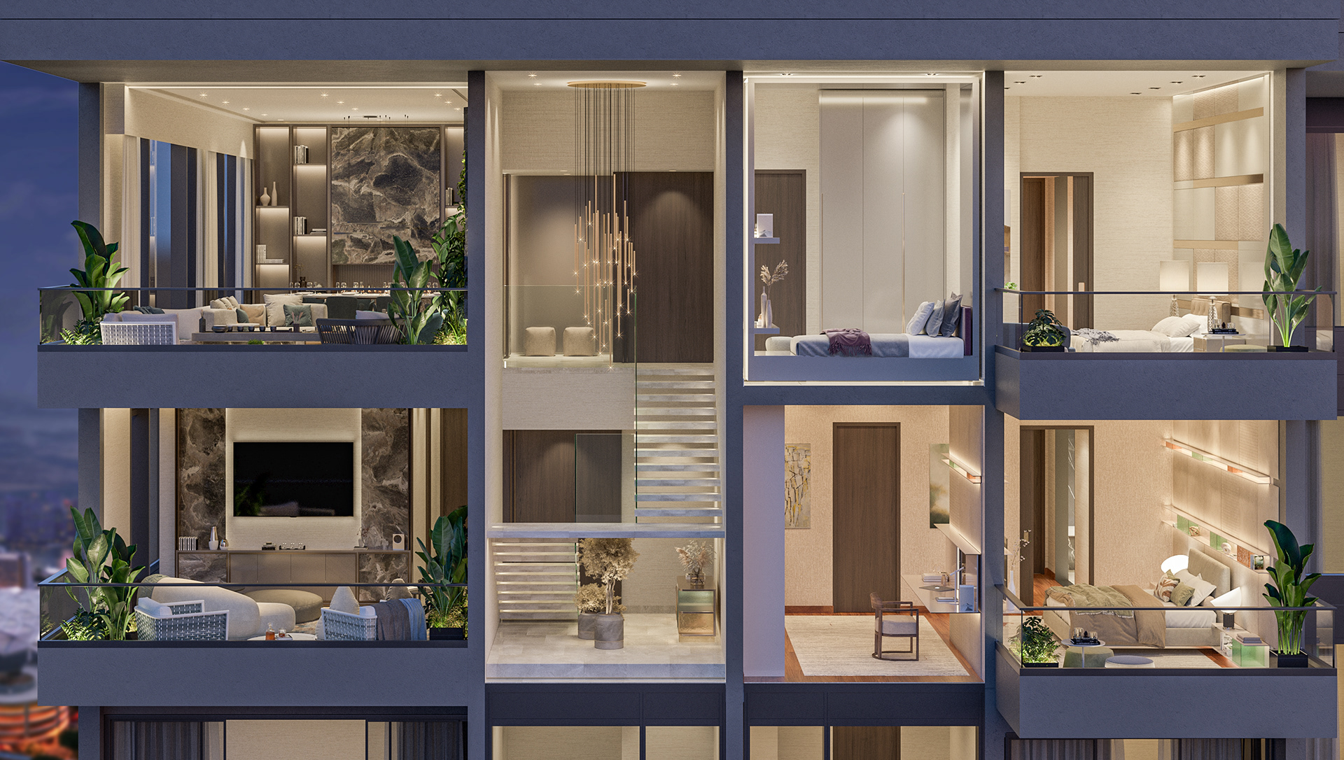 In collaboration with Saporiti Italia, S20M creates the interior concept, curates the furniture selection, and develops the full material palette for luxury duplex residences within the Midtown Modern development. We also produce cinematic still renderings, 3D animations, and an immersive virtual tour for marketing. • Media: Still render, 3D animation, Virtual tour • Details: Saporiti Italia / Midtown Modern Singapore • Scope : Interior Design Concept, Furniture Selection, Material Strategy, Visualization